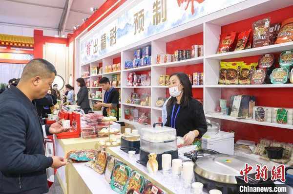 圖為第五屆贛菜美食文化節展區內,各類贛菜預制菜產品吸引民眾參觀。 劉力鑫 攝