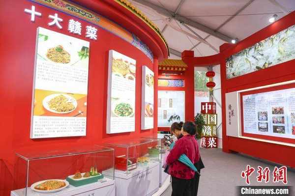 圖為第五屆贛菜美食文化節展區內,贛州贛菜主題館展示的贛州特色美食吸引民眾參觀。 劉力鑫 攝