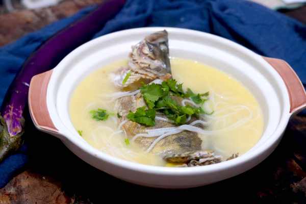 所需食材:鱖魚1條、米粉1把、薑片、植物油、鹽半勺、香醋半勺、雞粉2克