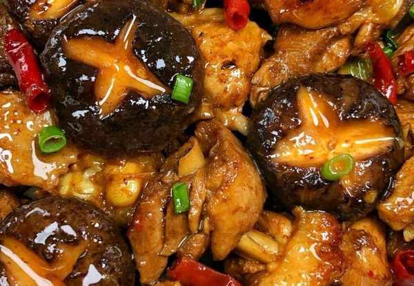 準備食材:雞肉,香菇,薑片,蔥段,八角,香葉,幹辣椒。