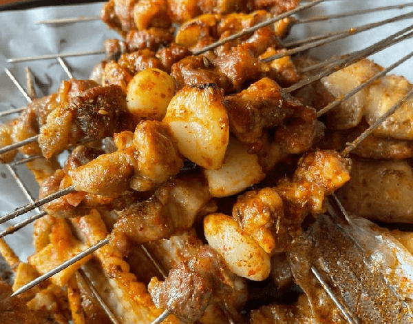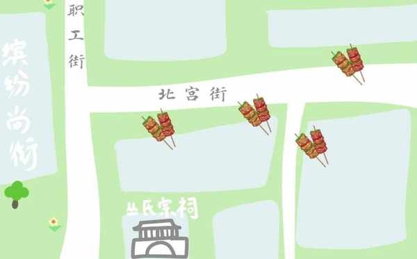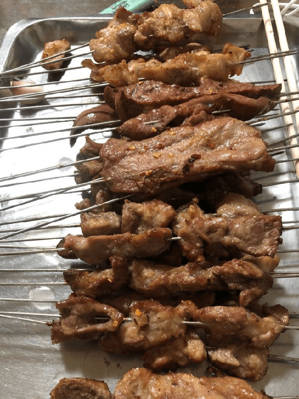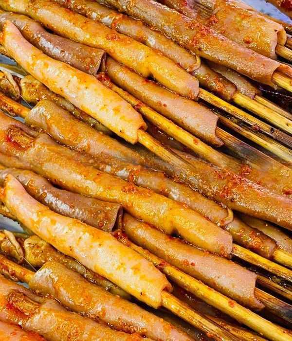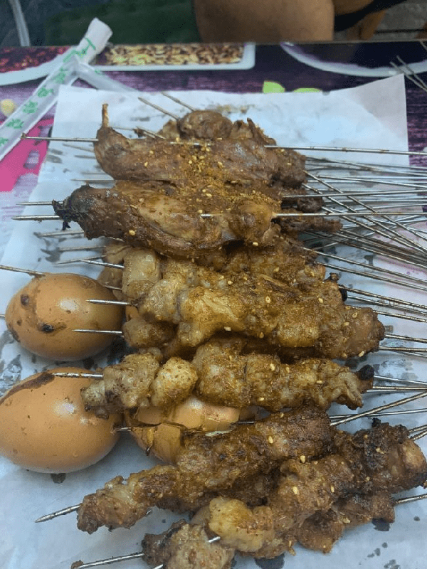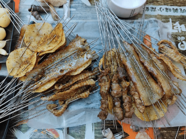 文山路以南,米山東路以北的永安街片區裡可以吃到秘制醬料的燒烤串兒,肉串烤到微微發紅外焦裡嫩,吃起來肉的汁水很足,筋又很彈牙,一定要趁熱吃才能品出其中美味。