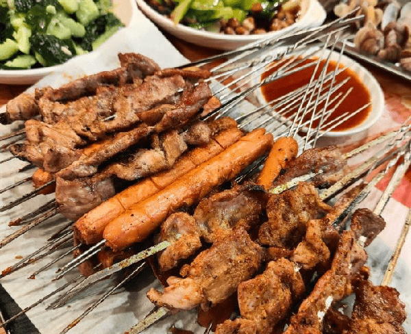 靠近市中心的初傢園與西關街,許多店內的燒烤小串的種類非常多,價格實惠,幾塊肉串趁熱,往下擼,瘦的精巧彈口,肥的香脆,醃漬過後的料味最是抓人。