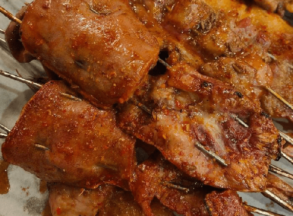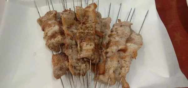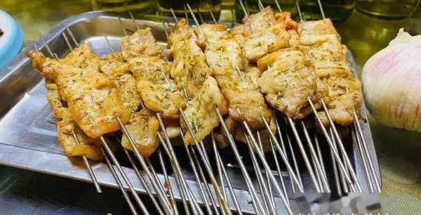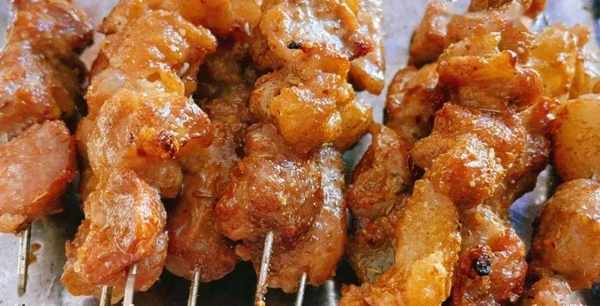 端上餐桌的肉串,