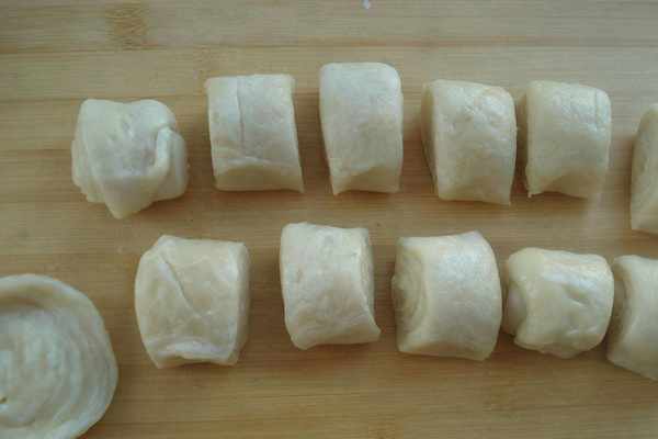 和好的面團分成小份,放在面板上揉成圓形,加入豬油揉成油酥,就跟咱做蛋黃酥的外皮差不多。另外,在做面皮的時候,可以用手戳一個洞,加上牛奶和白糖,這樣做出來特別香甜。搟面杖來回搟,直到光滑為止。光看著這個餅胚子都饞得不行瞭,出鍋一次吃3個。