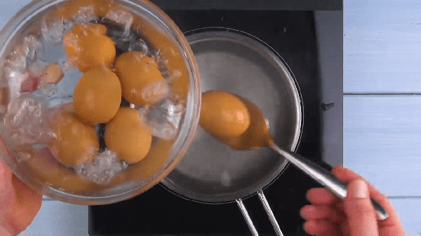 步驟、雞蛋水煮熟,雞蛋水煮熟瞭之後馬上放到有冰水的碗中冰鎮,冰鎮的目的是讓雞蛋更加的有彈性,還有就是讓雞蛋快速的冷卻;