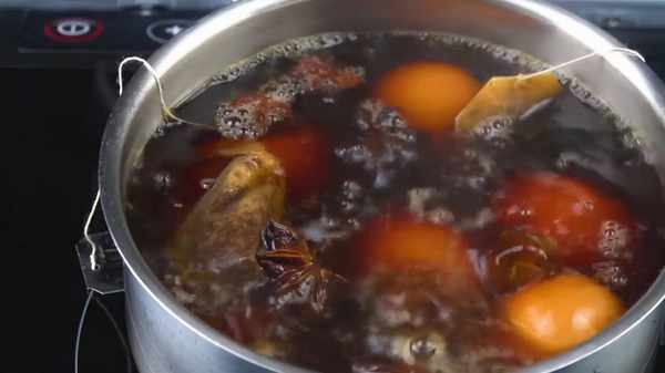 準備的食材有:黑胡椒,30克白砂糖,八角,2包紅茶,100毫升醬油,水煮雞蛋數個。