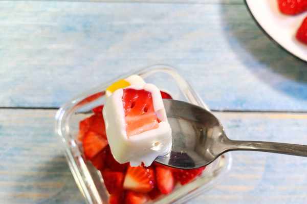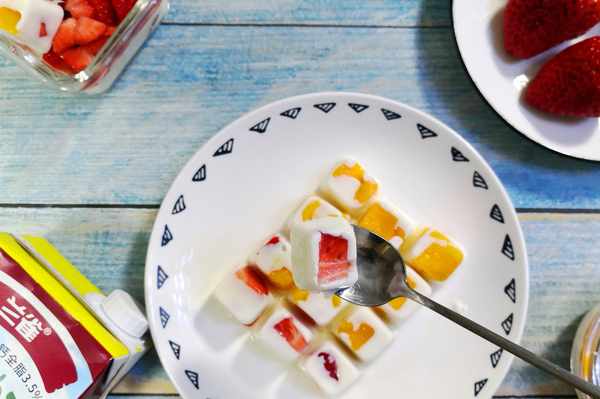 (1)提前做好準備工作,水果粒提前放入模具中。