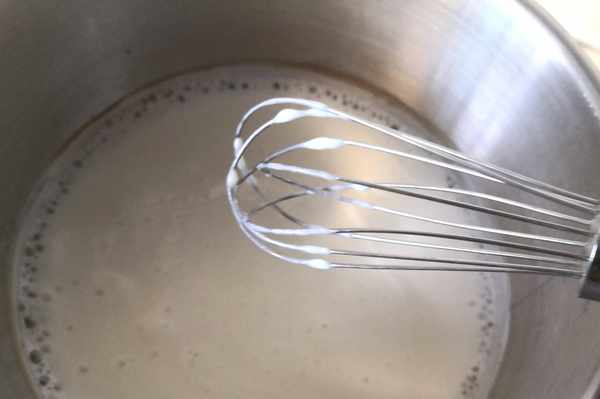 5、將奶鍋移置灶具上,中小火加熱煮沸,立即關火。