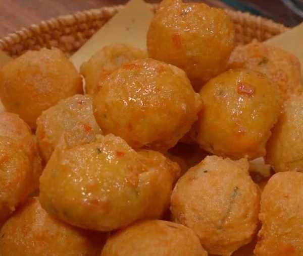 1.處理幹凈的土豆,上鍋蒸熟透,放入盆中壓成泥,加入胡蘿卜碎、火腿丁,調入蔥花、鹽、黑胡椒粉,加入一包小酥肉脆炸粉,攪拌均勻,團成丸子。