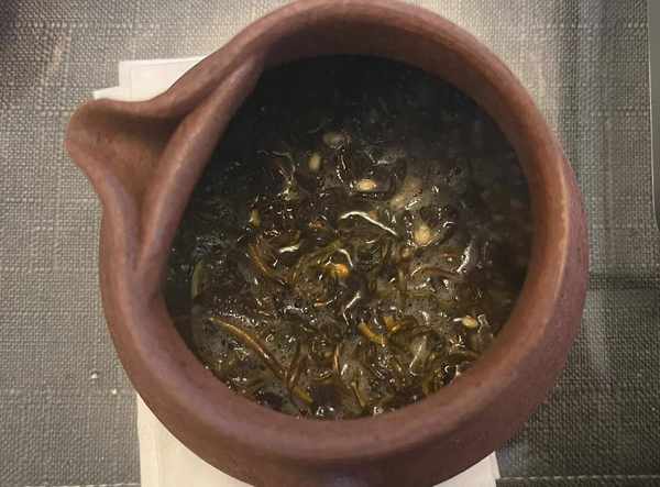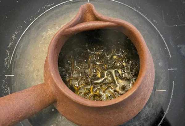 9、烤罐裡的茶加水也可以放在電陶爐裡繼續煮,直到沒有味道,都還是烤茶的滋味。