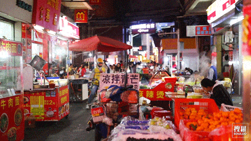 關鍵詞:炫目霓虹、越夜越旺、打工人的美食勝地