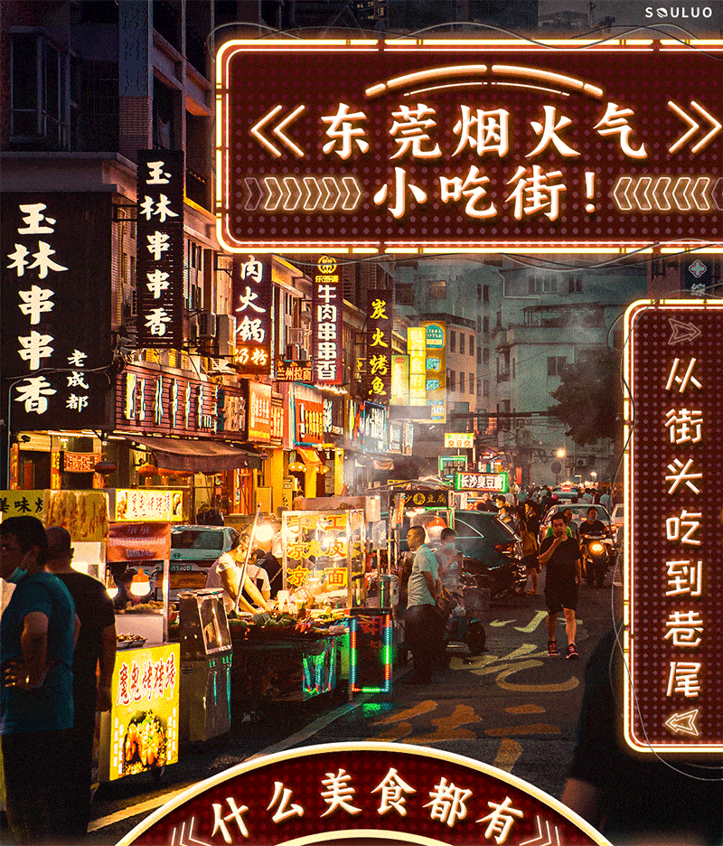 幾百米的距離,擺滿街的路邊攤、走鬼檔,從街頭到巷尾, 炒粉燒烤煎餅水果... 各地的小吃在這裡幾乎都能找到!甚至還能找到一些“網紅爆款”美食~接下來,帶你打卡東莞超火的7傢小吃街!