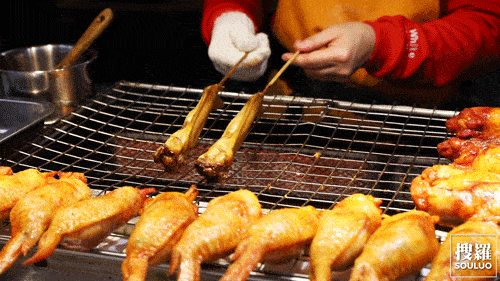 這壇子鹵水是真的誘人!還有一開檔就擠滿人的烤雞!
