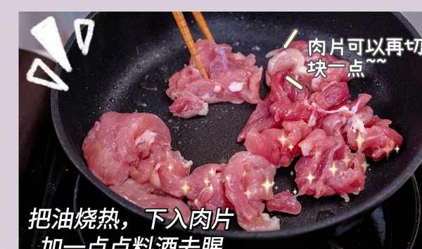 1先把蟹味菇和番茄洗幹凈,把番茄切成小丁,拿一點點料酒和鹽醃一下肉片。