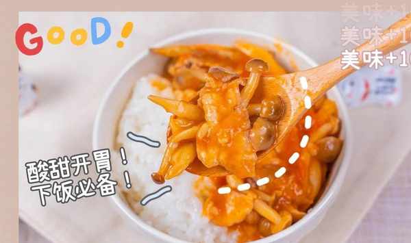 酸酸甜甜的濃鬱湯汁,順滑鮮爽的蟹味菇,這汁水拌飯,我能吃兩大碗!