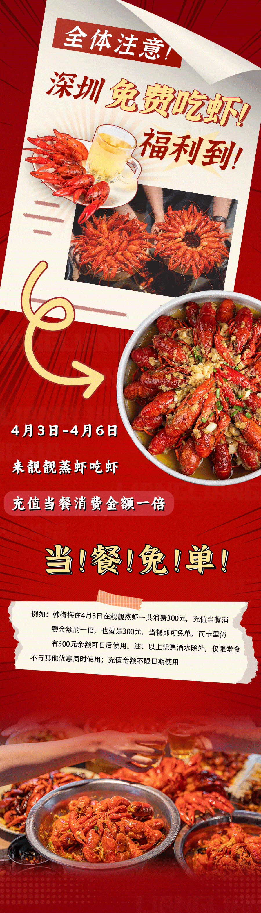 充值活動明天正式開始!這次趁著 「充值當餐免單」活動,不管吃過沒吃過的都要沖,有儲值多吃幾頓不心疼! 小編個人建議可以在 美味不用等or大眾點評提前排位,然後算著時間到店嘬蝦~?