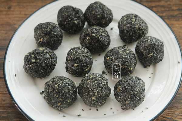 2、打好的花生碎➕黑芝麻➕白糖➕豬油(沒有可以加花生油),混合均勻,搓成小球,放入冰箱冷藏備用。