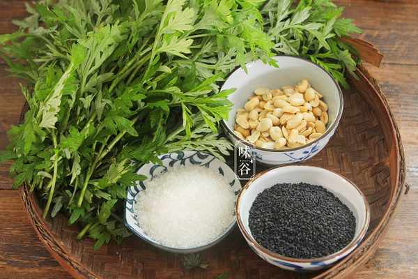 【食材】:艾草 適量,糯米粉 300,黑芝麻 適量,花生 適量,粘米粉 100克,小蘇打 1小勺,豬油 30克,白糖 適量,
