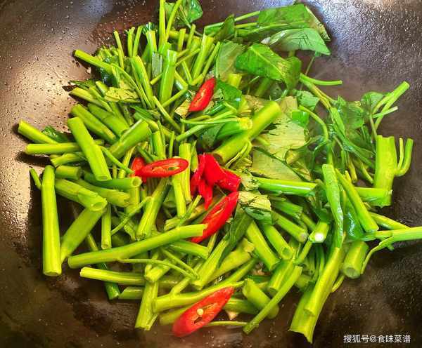 3、按照這個方式炒的空心菜,清香美味,營養豐富,纖維素豐富,加水要適可而止,一點點就夠瞭,水太多成瞭煮空心菜,會失去它的鮮,大火爆炒,越快越好。
