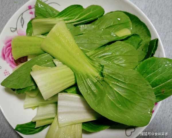 1、準備一把新鮮的小油菜,四月份的青菜,已經很常見瞭,早晨去買越新鮮越好,切掉根部,清洗幹凈,控幹水分備用。