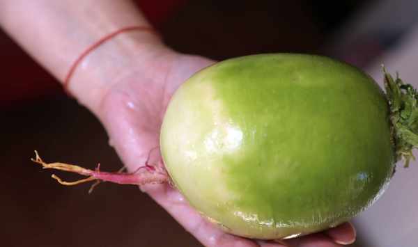 有的小夥伴會發現有時買回來的“心裡美”切開顏色並不是很紅,甚至白色還占主要的部分,其實在挑選時也是有小竅門的。最好選個頭小且同樣大小偏重的蘿卜,這樣的口感更脆嫩,因為水分很充足。最重要的一點是,要想切開得“心裡美”顏色漂亮,一定要選蘿卜的根須是紫紅色的,這樣的“心裡美”切開後肯定要比白根的顏色要漂亮很多。朋友們可以看下我挑選的蘿卜,是不是很漂亮?