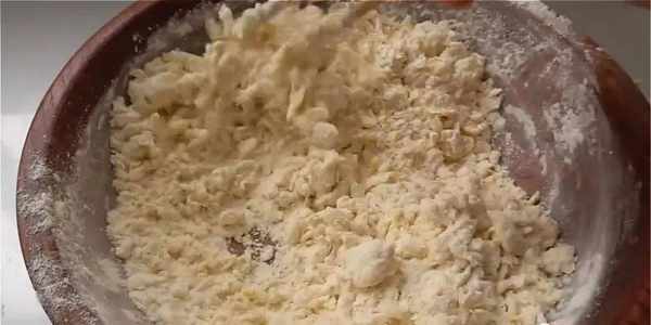 1.300克面粉、2個雞蛋、2克鹽一起放到盆裡,先把雞蛋攪散。40毫升的清水少量多次地加入,一邊倒一邊攪拌。攪拌成絮狀,再加入20毫升食用油。