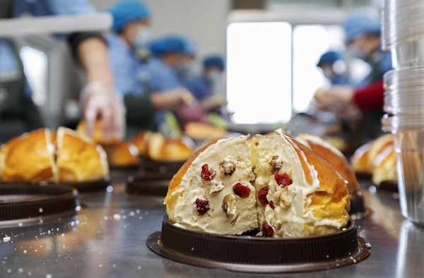咬一口“塔城奶酪包”,面包的醇香、絲滑的奶香以及堅果的脆香、幹果的果香在口腔中碰撞交融,最終形成濃鬱的甜香,讓人欲罷不能。
