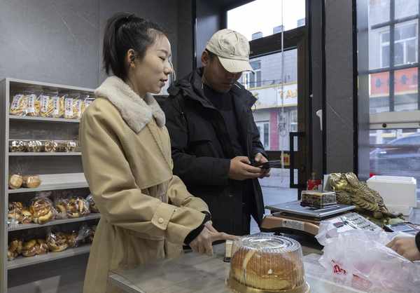 4月1日,在塔城市,顧客在門店購買“塔城奶酪包”。