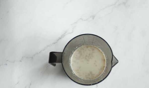 1、先打南瓜面。南瓜切片蒸熟壓成泥。幹酵母倒入牛奶中攪勻,加入細砂糖繼續攪勻後靜置6分鐘活化酵母。