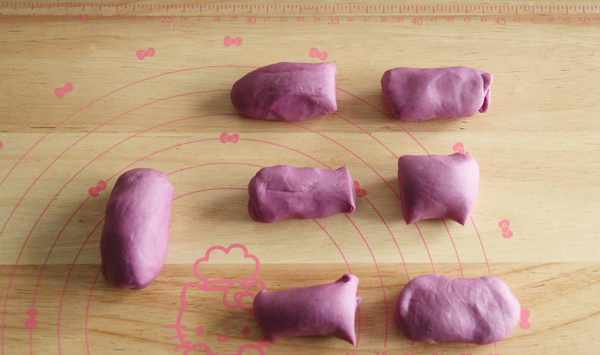 5、揉勻分團。50克面團作穗子。其餘面團分成6份,每份40克左右。