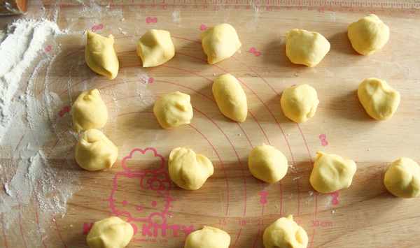 2、元寶面團一定不能大,太大蒸出膨脹太大。