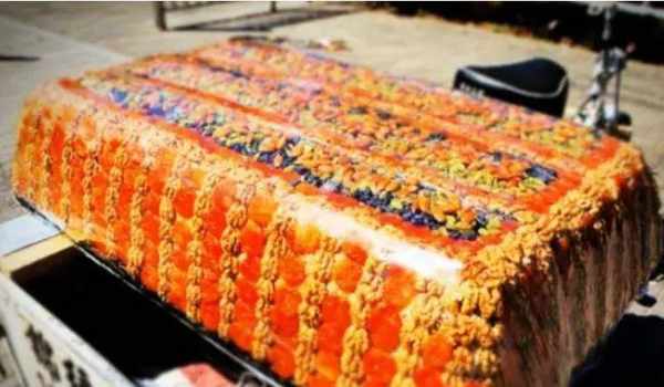 在新疆,切糕已經成為瞭當地人日常生活中不可或缺的美食之一,不僅受到當地人的喜愛,也受到瞭全國各地遊客的歡迎。因為其口感獨特,健康營養,同時也代表瞭新疆地方的文化特色。