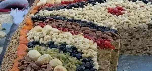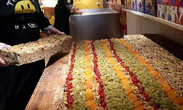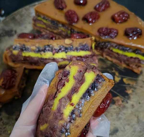 除瞭糯米粉、玉米面或小麥粉等材料之外,切糕的內部還會加入各種堅果、幹果、蜜餞等輔料,如核桃仁、花生、葡萄幹、桂圓幹、巴旦木等等,這些輔料讓切糕口感更加豐富。