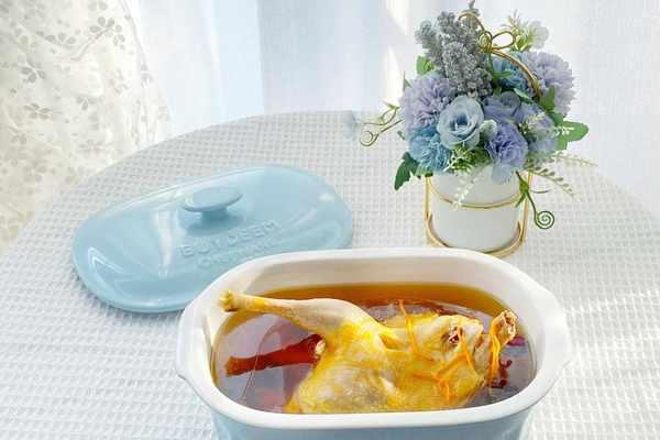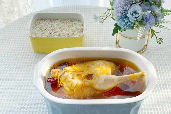 3、沒有蒸燉鍋的,可以用砂鍋燉煮,做法相同,雞燉熟瞭即可。