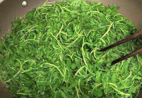 制作過程:第一步是準備紫花苜蓿。去根除雜後,徹底清洗幹凈,鍋內倒入清水,水開後加鹽。加入紫花苜蓿,用水焯一下;