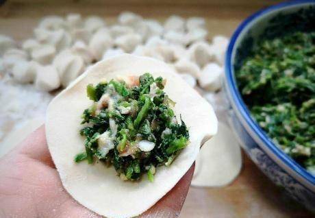 2、我個人喜歡把香噴噴的野菜和鮮嫩的蝦仁搭配在一起。如果你不喜歡蝦,你可以把它們放在外面。你也可以用山楂和豬肉。混合餡料時,加一點花生油,以免配料的水分變幹。;