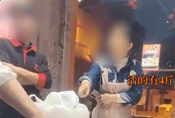 緊接著,該女子憤怒地問道,“你現在有沒有4斤?”隨後,店員表示,“我現在有4斤,活的是4斤。”