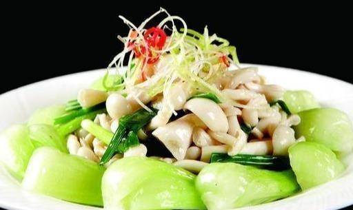 材料:白玉菇、青菜(小油菜)、薑、蒜、生抽、糖、鹽、雞精