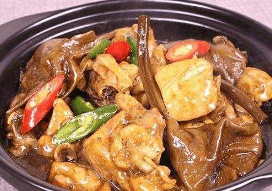 紅燒黃雞是魯菜中的一道傢常菜。以雞腿肉為原料,配上青椒、土豆、香菇等,鮮美嫩滑,符合大眾口味。而紅燒雞也很成功。在不同的城市都可以看到。燉雞很好吃,所以很多人都喜歡點這道菜。
