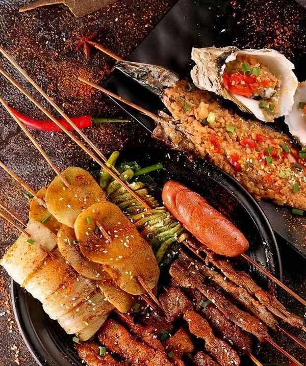目前的燒烤也是很講究的,註重色彩搭配,營養均衡。像羊肉串,韭菜,生蠔,土豆,金針菇之類的數不勝數,種類還是很豐富的。