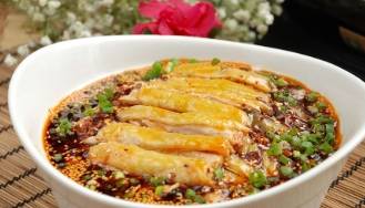 第2個缽缽雞。這個是來源於四川樂山的地方特色小吃,屬於川菜系,已有上百年的歷史,它是以陶器缽盛放,配以麻辣為主的配料,加上多種配料去骨雞片拌合而成。缽缽原意為瓦罐,運用瞭疊音詞的方式起的菜名,聽起來別致又有親切感,皮脆肉嫩,麻辣鮮香。