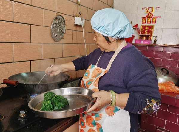 霞姨告訴記者,艾草要清洗幹凈然後瀝幹,往鍋裡滴些許油,把艾草放進鍋裡煮,撈出切碎後再次放進鍋裡煮沸,能更好地去除艾草的澀味。煮好的艾草汁倒進糯米粉中攪拌,反復搓揉、擠壓和延展,十來分鐘後,面團逐步成形發硬。