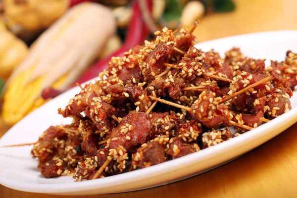 食材:瘦肉、生抽、老抽、鹽、蠔油、料酒、淀粉、胡椒粉、白芝麻、大蒜、孜然粉