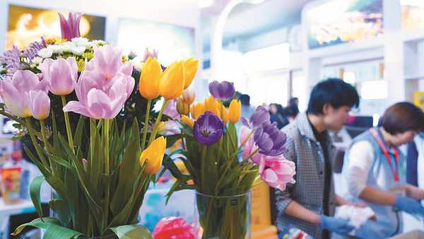 連雲港東海縣雙店鎮鴻順鮮切花專業合作社展位前,顏色各異的鮮切花各美其美。該合作社理事長吳南京介紹,為瞭提升曝光度和銷量,合作社近年來堅持線上線下同步銷售。其創立的自主商標“垚鑫花匠”,與全國各大鮮切花批發商密切合作,產品遠銷廣州、上海、鄭州、武漢、烏魯木齊等城市。此外,也在淘寶、郵政直播、拼多多等電商平臺進行銷售,“網絡銷售可以和市民直接交易,減少瞭批發商和花店兩個環節,比花店價格更實惠。”