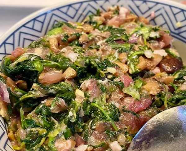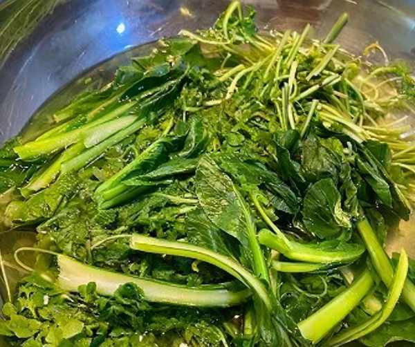 然後我們來處理食材:先將面粉中少量多次地倒入溫水,邊倒邊攪拌成面絮,最後揉成光滑的面團,蓋上保鮮膜放在溫暖的地方發酵一段時間,在發酵面粉的時候,我們可以把薺菜裡面的雜草、黃葉都給摘幹凈,然後多沖洗幾次,最好能放在淡鹽水裡面泡10分鐘,這樣才能去除裡面的雜質,清洗幹凈後放在開水鍋中焯水10秒,這樣就能去除薺菜的幹苦澀感,還能讓薺菜更加的清香。