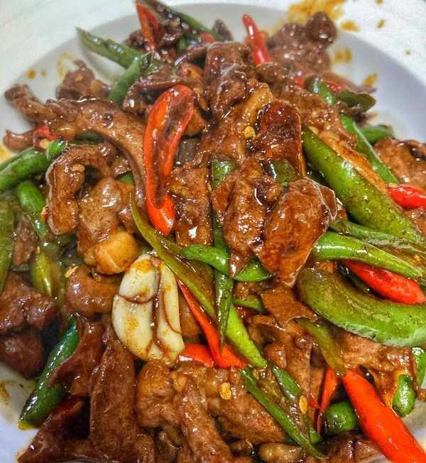 ④豬心入味後放入辣椒翻炒,即可出鍋