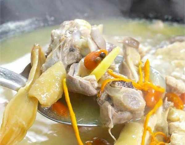 3、假如傢中沒有野菌,可以加一些香菇或者是杏鮑菇之類的代替。枸杞要在燜煮30分鐘後加入,過早的加入會令營養喪失。