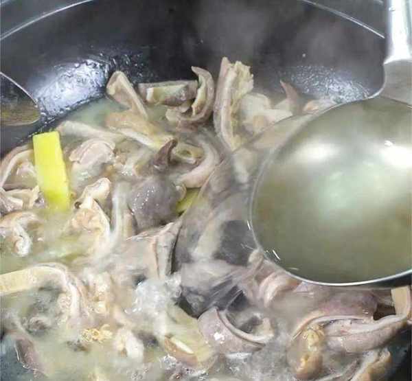 觀察鍋中的湯汁,當湯汁逐漸變得濃稠時我們就可以關火把菜盛入盤中瞭。口感上這道菜爽脆軟嫩,融合瞭豬肚和雞肉的鮮美味道。