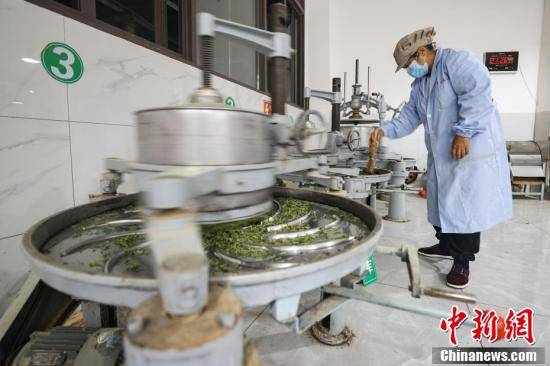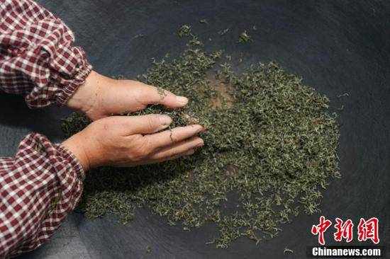 目前,除傳統手工制茶外,當地茶葉加工坊也將“雲霧貢茶”制作機械化、清潔化、標準化,降低瞭制茶的勞動強度和成本。圖為4月2日,貴定縣雲霧鎮一傢茶葉加工坊工人用傳統手工方式制作“雲霧貢茶”。瞿宏倫 攝