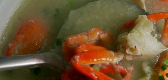 小吳直接品味瞭一口粥,吃起來的感覺就是除瞭蟹味之外,還帶有蛋香的味道,特別的過癮!如果要說到粥水的話,潮汕的砂鍋粥是顆粒分明的,這裡的粥水就煲到融瞭綿瞭。但其實喝起來還是很不錯的,這水蟹也挺不錯。